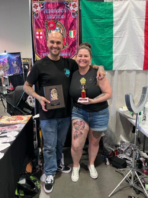 Massimiliano “Penny Boy” Pennella is an internationally renowned Italian tattoo artist, specialized in Traditional Old School tattooing. His unique style blends iconic American tattoo elements with a personal artistic touch.